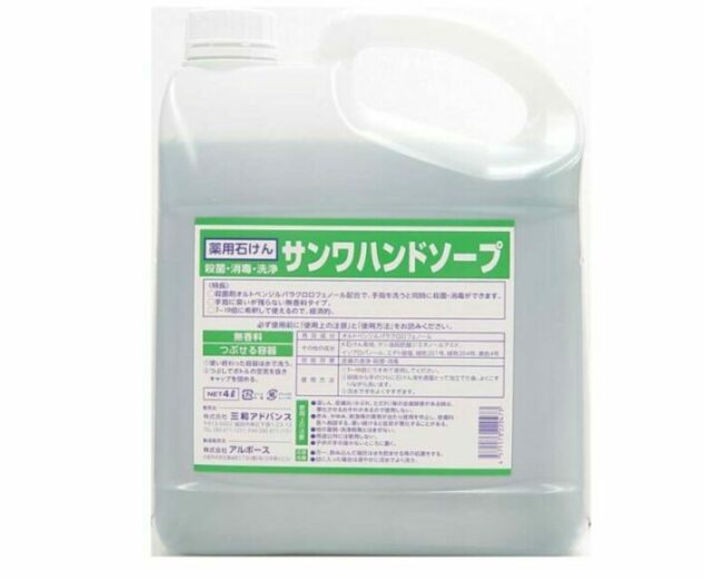 ・殺菌剤(オルトベンジルパラクロロフェノール)配合 ・手指に匂いが残らない無香料タイプ。 ・泡ハンドソープディスペンサーで使用可能。 ・3~5倍希釈の経済的な濃縮タイプ。(実使用量:12~20kg) |